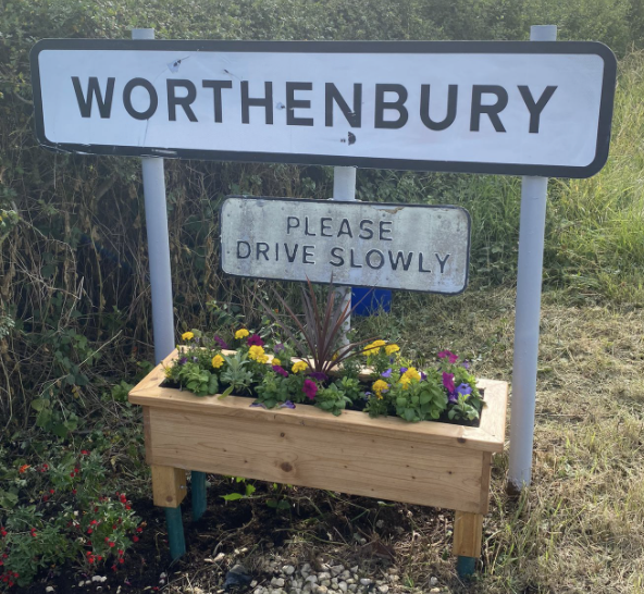 Tallarn Green is welcoming visitors to the village with a newly refurbished sign and planter thanks to the efforts of local Community Councillors. The sign situated on the outskirts of the village near the Sarn has been cleaned and painted following work to cut back the grass verge and hedgerow. Work to refurbish Tallarn Green’s other village sign will be carried out by Community Councillors later this month.