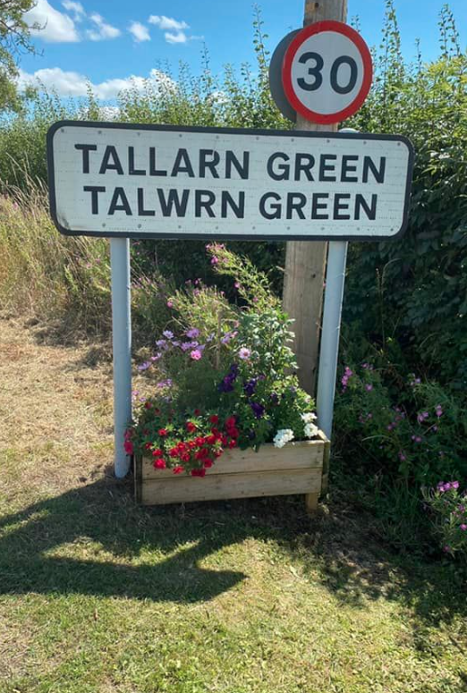 Tallarn Green is welcoming visitors to the village with a newly refurbished sign and planter thanks to the efforts of local Community Councillors.