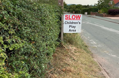 Motorists travelling through Tallarn Green will now have a clear view of a speed limit sign following work by the Community Council to cut back hedgerows. The overgrown grass verge and hedgerow had all but obscured the 30mph sign which is situated near Tallarn Green’s Chapel Field. The overgrowth had also made it more difficult to see the nearby sign requesting motorists to slow down for the children’s play area.